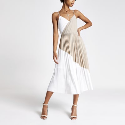 Beige Midi Dress: No zipper print placement may vary.